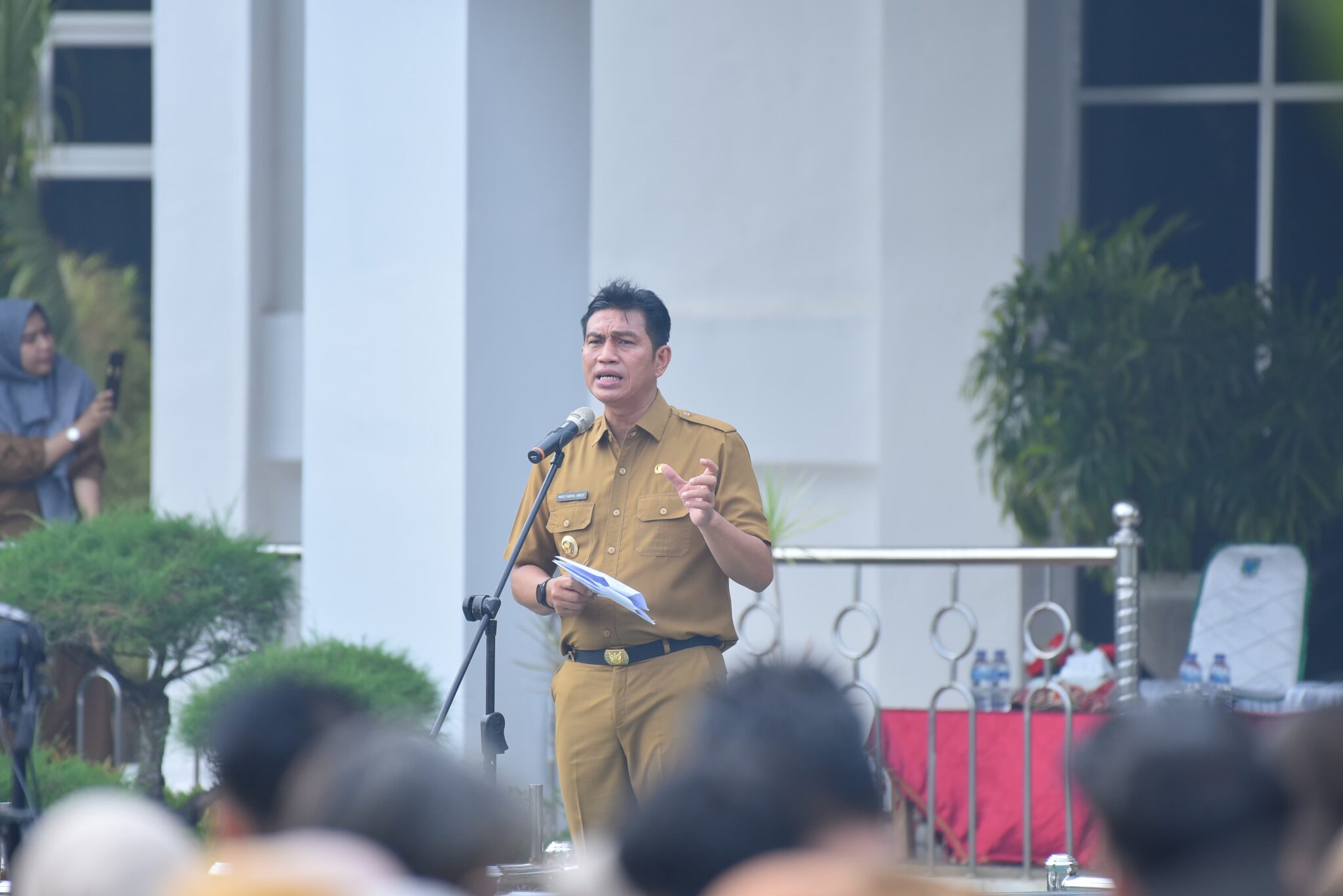 Bupati Fadhil dalam pidato sempat pertanyakan tentang gaji ptt, apakah masih ada gaji PTT yang terlambat dibayarkan, kemudian dijawab ‘iya’ secara serentak oleh sebagian pegawai PTT yang mengikuti apel gabungan tersebut.